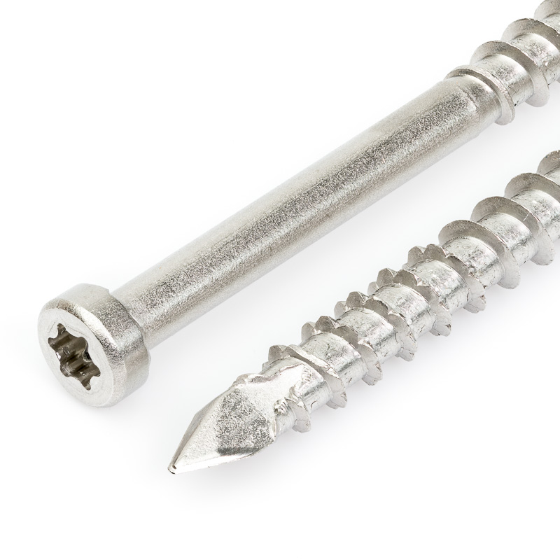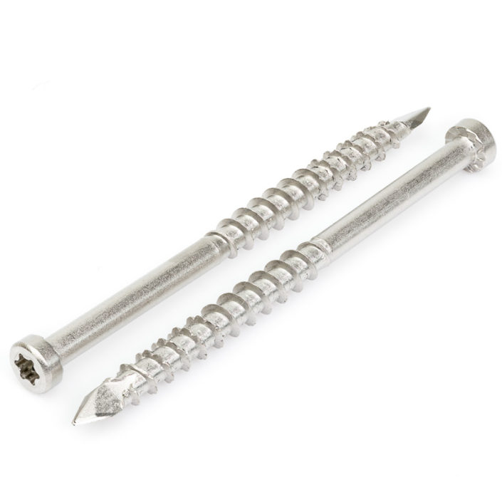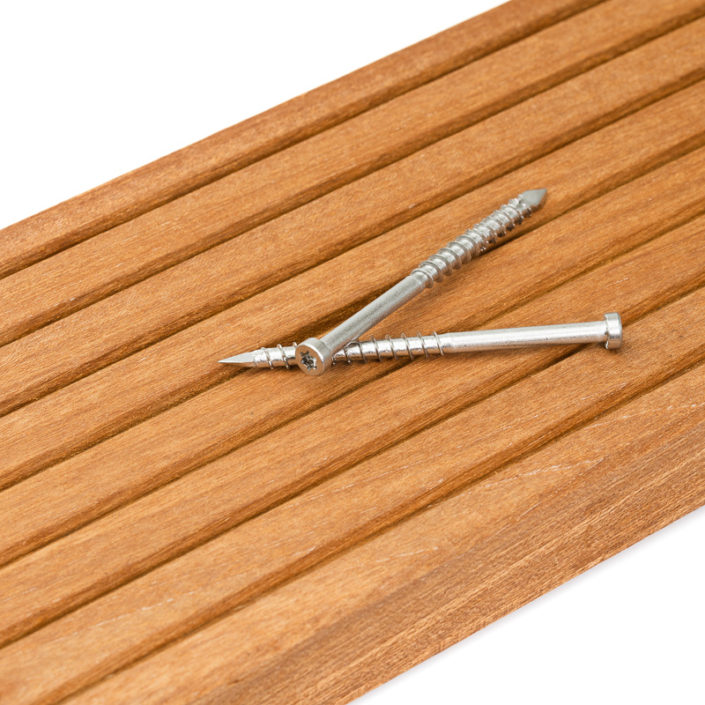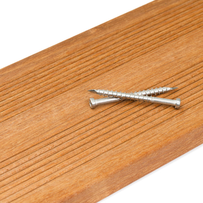 Vår självborrande skruv DrillFix A4 som är rostfri och syrafast (A4), är speciellt framtagen för enkel infästning av Bangkirai trall och kan användas för tjocklekarna 21 och 28 mm.