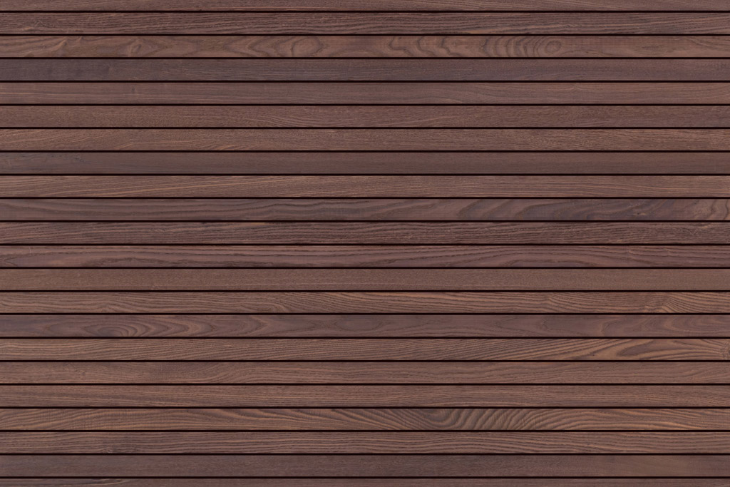 Thermory Benchmark C4J rakkantad ribbpanel i värmebehandlad Ask för dold infästning.