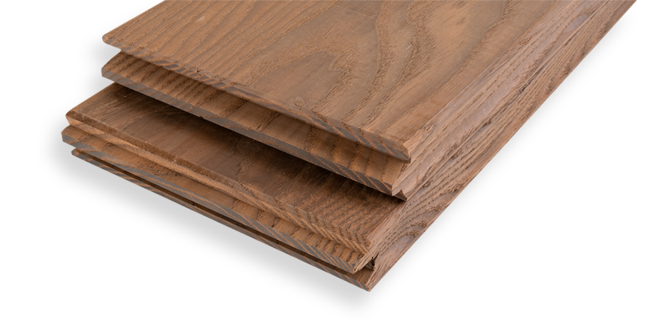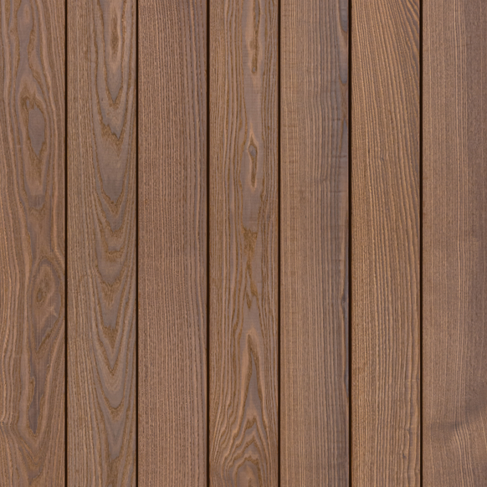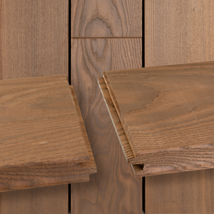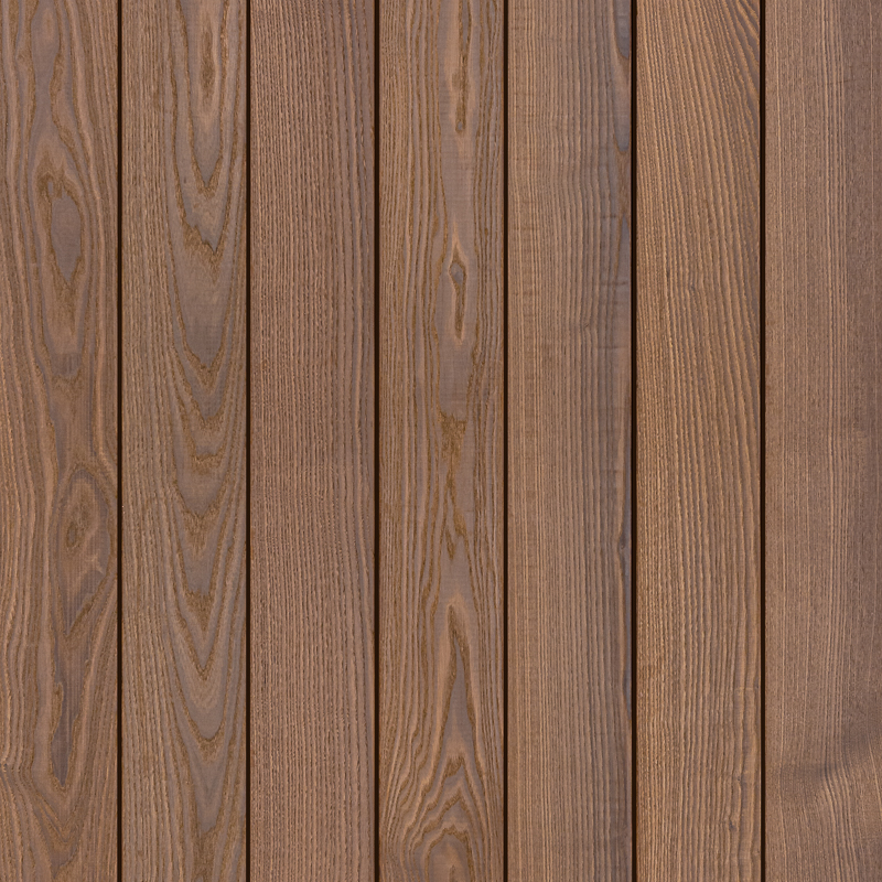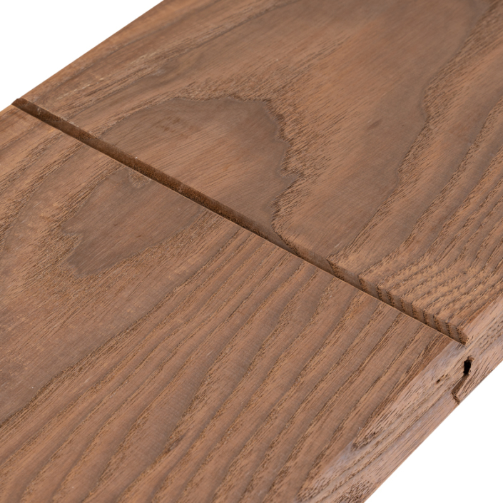 Thermory värmebehandlad trall i Ask som har en unik kantprofil utformad för dolt montage.
