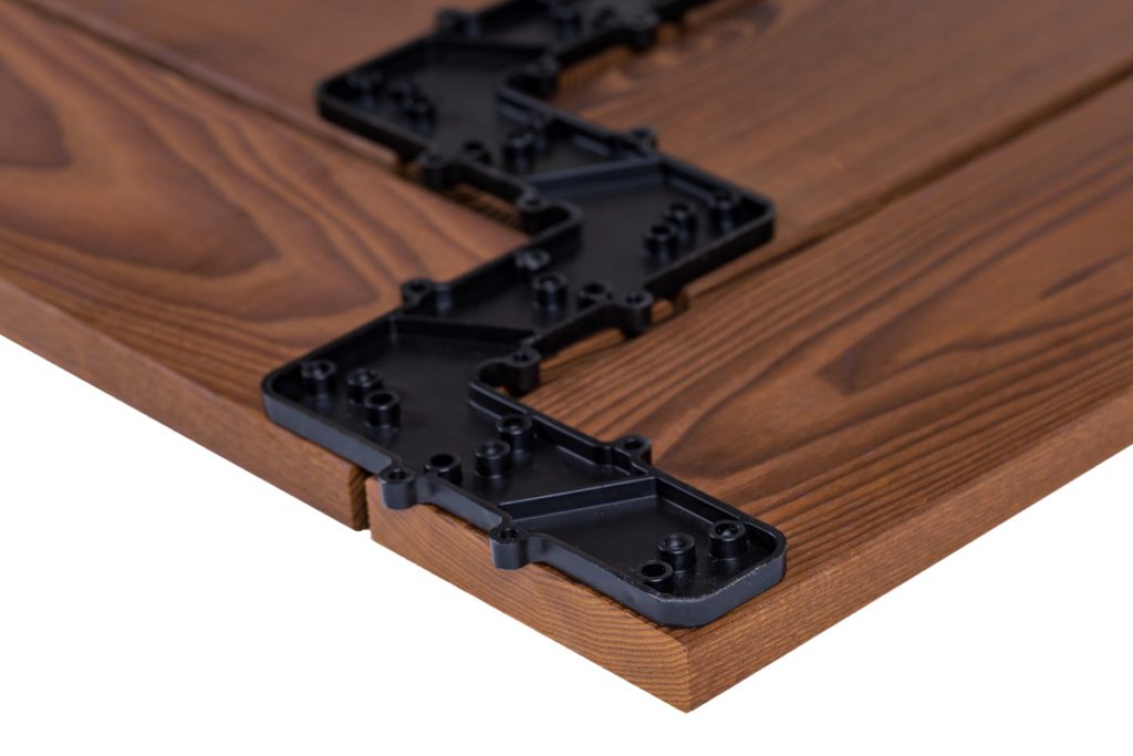 Det smarta modulsystemet gör att du kan installera det här fiskbenmönstrade däcket på betydligt kortare tid än med traditionella metoder.